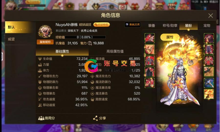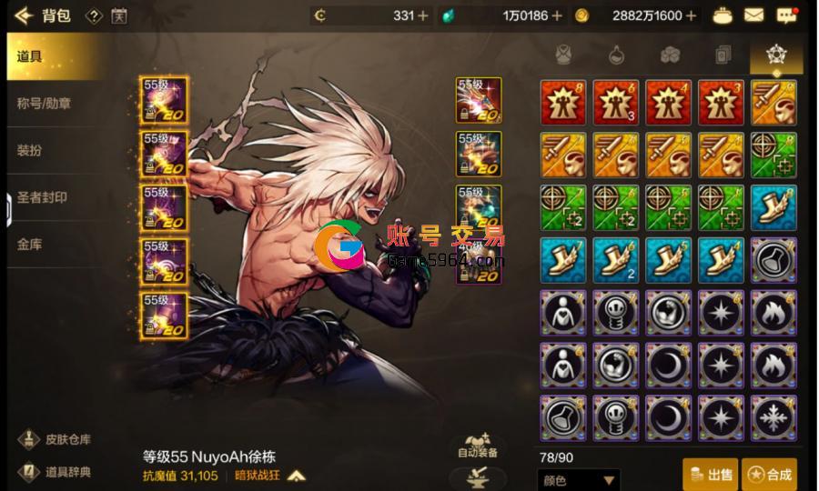 狂战士 +20武器强化 天空套 3W以上抗魔值 8满级角色