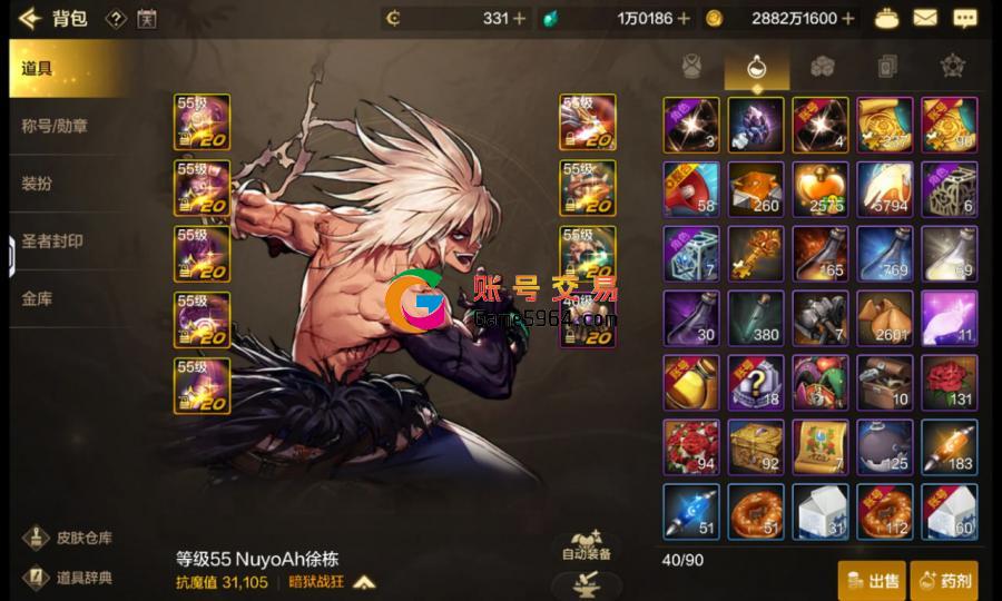 狂战士 +20武器强化 天空套 3W以上抗魔值 8满级角色...