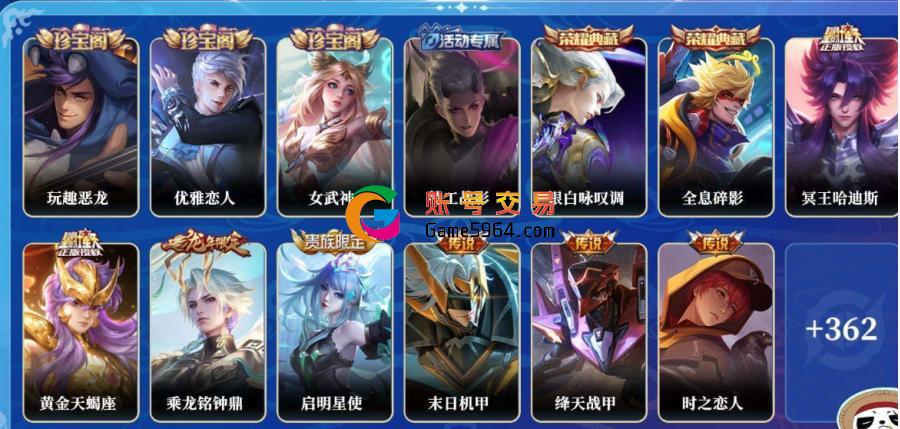 贵族9 皮肤价值:295660 荣耀典藏2 传说皮肤22 史诗皮肤11...¥2000.00