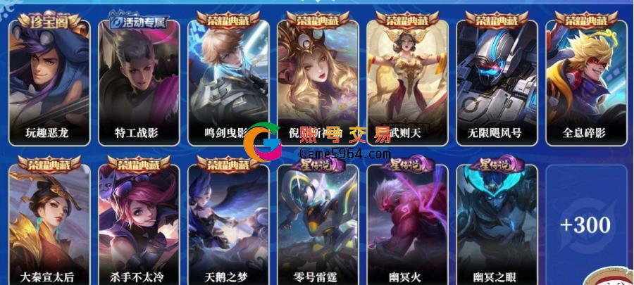 贵族10 皮肤价值:347380 荣耀典藏8 传说皮肤23 史诗皮肤95 英雄121 皮肤313 至尊星耀IV