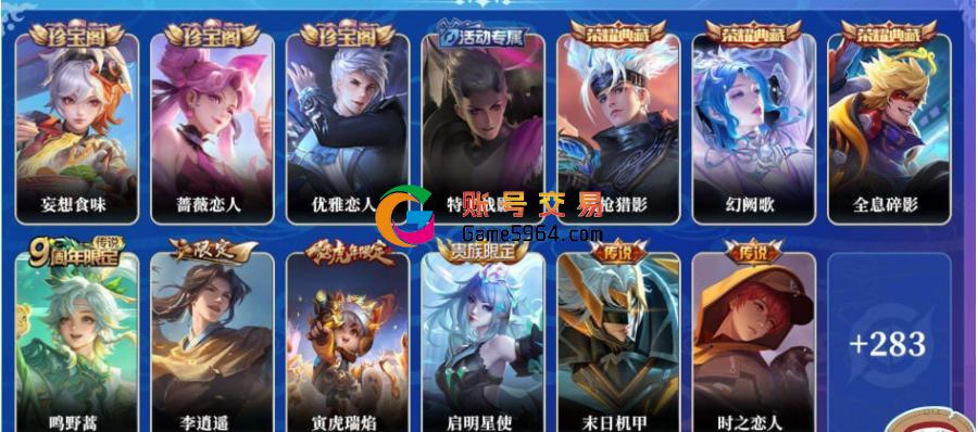 贵族8 皮肤价值:216888 荣耀典藏1 传说皮肤13 史诗皮肤87...¥2528.00