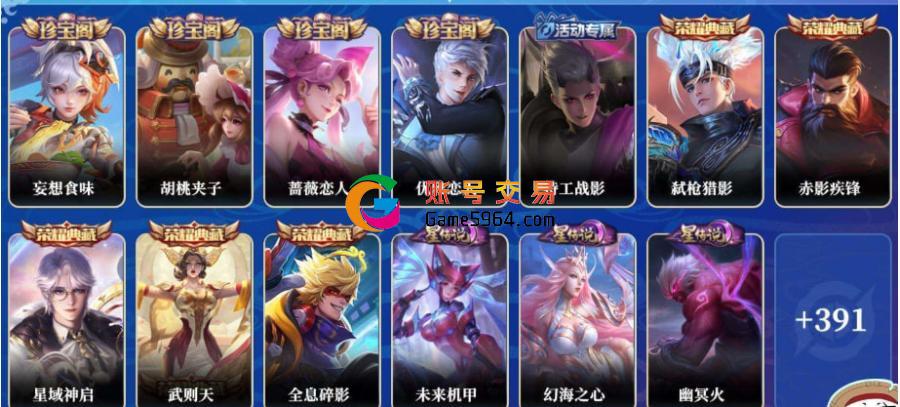 贵族6 皮肤价值:39228 荣耀典藏0 传说皮肤2 史诗皮肤27 英...¥501.00