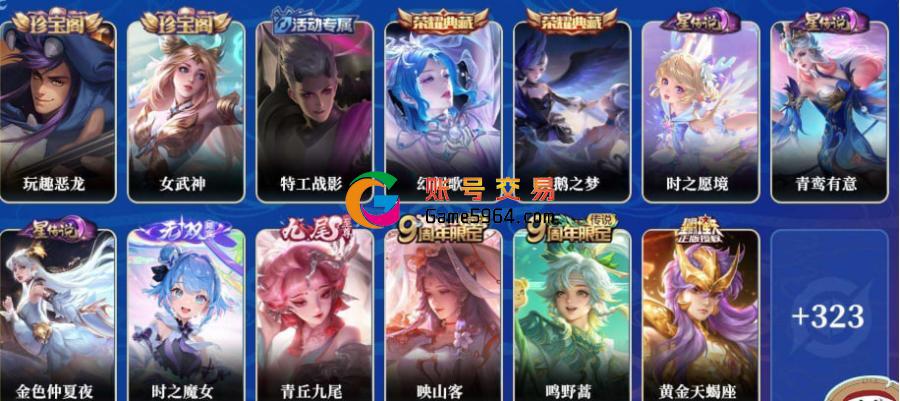 贵族6 皮肤价值:39228 荣耀典藏0 传说皮肤2 史诗皮肤27 英...¥501.00
