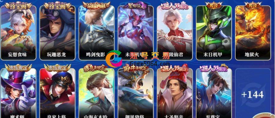 贵族9 皮肤价值:336360 荣耀典藏3 传说皮肤36 史诗皮肤12...¥2900.00