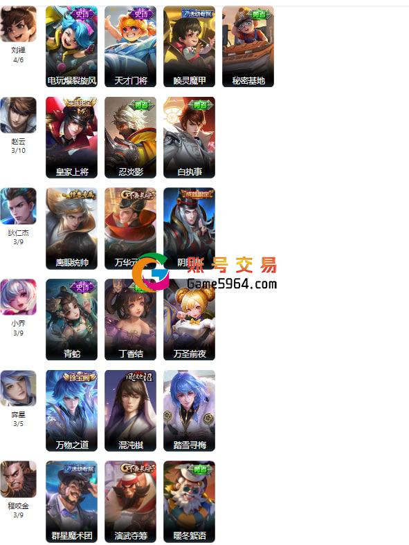 贵族9 皮肤价值:336360 荣耀典藏3 传说皮肤36 史诗皮肤12...¥2900.00