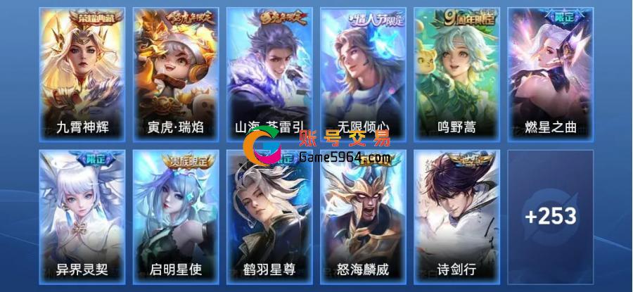 貂蝉-圣诞恋歌,鬼谷子-阿摩司公爵,雅典娜-战争女神,孙膑-天使之翼,武则天-东方不败,廉颇-地狱岩魂,阿古朵-熊喵少女,鲁班大师-归虚梦演,蒙恬-秩序猎龙将,白起-星夜王子,钟无艳-海滩丽影,梦奇-美梦成真,刘禅-绅士熊喵,兰陵王-暗隐猎兽者,孙策-猫狗日记,金蝉-前尘,王昭君-精灵公主,瑶-森,雅典娜-冰冠公主,哪吒-次元突破,蒙犽-顽岩魄,哪吒-三太子,盾山-极冰防御线,伽罗-箭羽风息,嫦娥-露花倒影,芈月-红桃皇后,杨戬-天秀·启明,狂铁-命运角斗场,钟无艳-生化警戒,安琪拉-玩偶对对碰,狄仁杰-锦衣卫,大乔-伊势巫女,张飞-乱世虎臣,百里玄策-威尼斯狂欢,马超-幸存者,钟无艳-聚星闪耀,张良-古海寻踪,猪八戒-年年有余,刘禅-电玩·爆裂旋风,墨子-金属风暴,钟馗-地府判官,李元芳-妄想特派,司马懿-魇语军师,莱西奥-西部游侠,姬小满-零食大作战,猪八戒-潮玩探月行,孙膑-未来旅行,女娲-尼罗河女神,刘禅-英喵野望,沈梦溪-鲨炮海盗猫,太乙真人-劲辣红锅,姜子牙-时尚教父,李元芳-逐浪之夏,赵云-忍·炎影,元歌-午夜歌剧院,西施-归虚梦演,典韦-黄金武士,露娜-哥特玫瑰,扁鹊-救世之瞳,伽罗-花见巫女,杨玉环-霓裳曲,后羿-阿尔法小队,宫本武藏-万象初新,安琪拉-心灵骇客,兰陵王-隐刃,东皇太一-东海龙王,牛魔-西部大镖客,沈梦溪-棒球奇才,赵怀真-太极少年,露娜-绯红之刃,曹操-超能战警,鲁班七号-木偶奇遇记,刘禅-秘密基地,镜-冰刃幻境,铠-龙域领主,白起-乐园追猎者,太乙真人-圆桌骑士,澜-赏金猎手,裴擒虎-街头旋风,桑启-画中游,刘邦-圣殿之光,明世隐-占星师,苏烈-爱与和平,韩信-街头霸王,韩信-教廷特使,弈星-踏雪寻梅,刘禅-天才门将,鲁班七号-电玩小子,夏侯惇-乘风破浪,甄姬-花好人间,牛魔-牛运亨通,白起-白色死神,墨子-龙骑士,达摩-拳王,妲己-女仆咖啡,王昭君-偶像歌手,赵云-未来纪元,吕布-末日机甲,孙策-海之征途,海月-幻泉雾影,盘古-创世神祝,小乔-丁香结,姜子牙-炽热元素使,黄忠-芝加哥教父,后羿-精灵王,吕布-圣诞狂欢,王昭君-幻想奇妙夜,孙尚香-水果甜心,程咬金-功夫厨神,诸葛亮-掌控之力,刘备-潮玩造梦师,大乔-守护之力,盾山-圆桌骑士,戈娅-危途狂花,公孙离-花间舞,百里守约-绝影神枪,张飞-五福同心,蒙恬-蔚蓝守将,夏侯惇-战争骑士,花木兰-兔女郎,孙悟空-西部大镖客,蒙犽-归虚梦演,虞姬-加勒比小姐,孙膑-归虚梦演,干将莫邪-第七人偶,老夫子-功夫老勺,老夫子-潮流仙人,李元芳-特种部队,宫本武藏-鬼剑武藏,刘禅-唤灵魔甲,司空震-启蛰,李白-范海辛,花木兰-水晶猎龙者,夏洛特-永昼,蔡文姬-舞动绿茵,孙尚香-沉稳之力,吕布-野性能量,铠-曙光守护者,诸葛亮-黄金分割率,上官婉儿-修竹墨客,李白-敏锐之力,阿轲-节奏热浪,暃-碧珀绯影,高渐离-金属狂潮,马可波罗-潮玩牛仔,李信-灼热之刃,狂铁-特工战影,刘备-汉昭烈帝,周瑜-海军大将,杨戬-埃及法老,蔡文姬-蔷薇王座,澜-孤猎,不知火舞-魅语,貂蝉-异域舞娘,曜-归虚梦演,达摩-大发明家,鲁班大师-乓乓大师,鲁班七号-福禄兄弟,云缨-赤焰之缨,娜可露露-晚萤,扁鹊-化身博士,小乔-缤纷独角兽,妲己-少女阿狸,苏烈-坚韧之力,关羽-龙腾万里,韩信-白龙吟,张良-缤纷绘卷,马可波罗-激情绿茵,诸葛亮-星航指挥官,关羽-天启骑士,狄仁杰-鹰眼统帅,刘备-万事如意,曹操-幽灵船长,赵云-白执事,李白-千年之狐,妲己-魅力维加斯,花木兰-剑舞者,亚瑟-死亡骑士