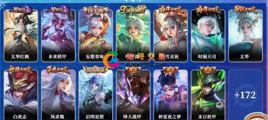 贵族7 荣耀典藏2 珍品传说1 传说皮肤9 史诗皮肤41 皮肤数量15...¥998.00