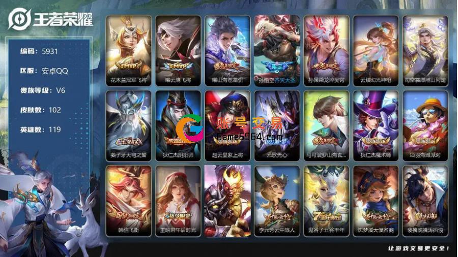 V6 1星传说 7传说 31史诗 102皮肤 118英雄 至尊星耀I...¥100.00