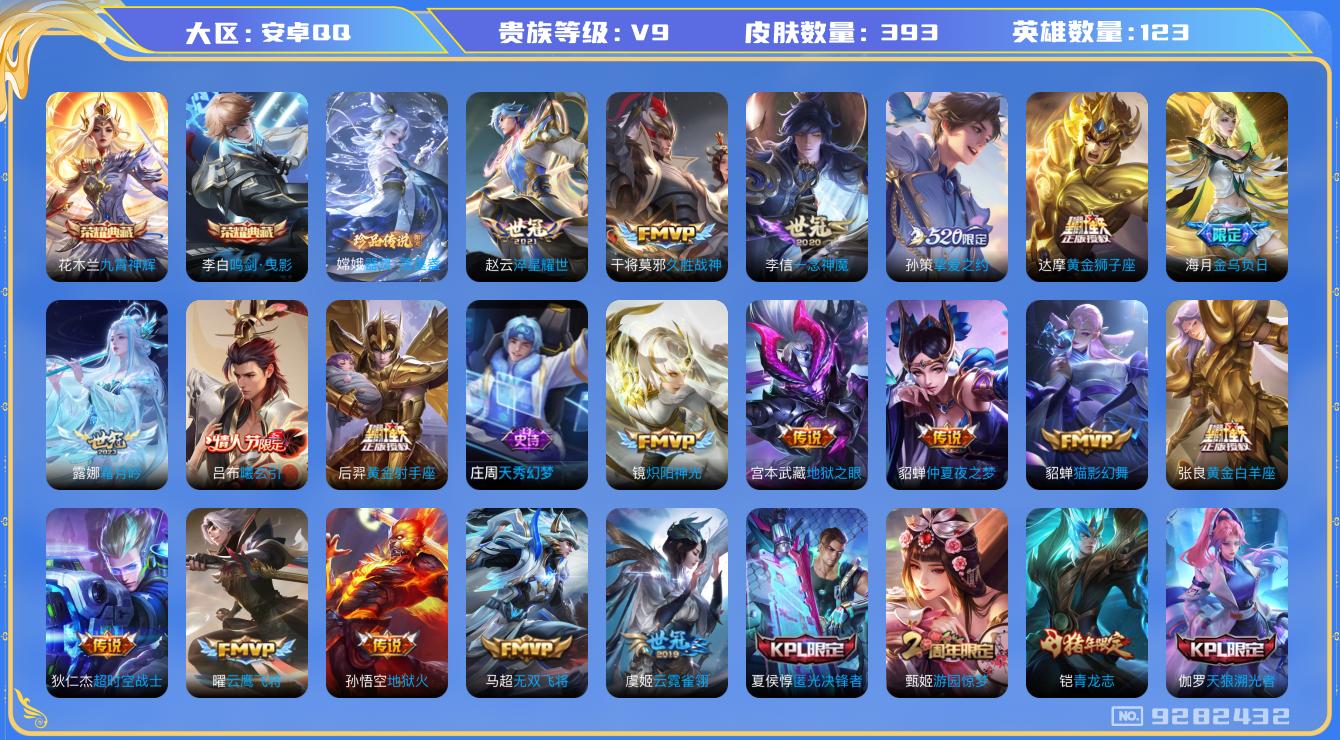 V9 2典藏 26传说 128史诗 393皮肤 122英雄 最强王...¥1500.00