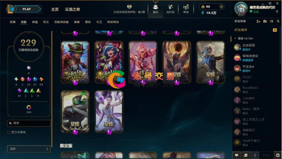 1终极 12神话 27限定 26传说 41史诗 229皮肤...¥100.00