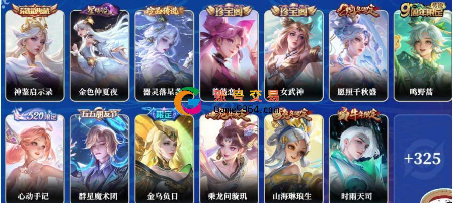 【英雄数量】123 【皮肤数量】338 【区服】安卓QQ55区 【实名情况】可二次实名 【有无防沉迷】无防沉迷 【段位】无双王者 【贵族等级】8 【拥有小国标】小国标姜子牙 【稀有英雄】9 _敖隐 _金蝉 _艾琳 _夏洛特 _橘右京 _不知火舞 _娜可露露 _赵云 _韩信 【皮肤价值】270388 【内测皮肤】2 孙尚香_蔷薇恋人 艾琳_女武神 【荣耀皮肤】1 虞姬_神鉴启示录 【珍品无双】0 【无双皮肤】0 【珍品传说】1 嫦娥_器灵落星盏 【星元皮肤】1 金色仲夏夜 【传说皮肤】35 女娲_愿照千秋盛 桑启_鸣野蒿 朵莉亚_心动手记 云中君_群星魔术团 海月_金乌负日 孙尚香_乘龙问璇玑 小乔_山海琳琅生 诸葛亮_时雨天司 百里玄策_白虎志 貂蝉_曦玄引 安琪拉_追逃游戏 虞姬_启明星使 王昭君_乞巧织情 小乔_音你心动 貂蝉_仲夏夜之梦 甄姬_至美化雀舞 大乔_时之奇旅 鲁班七号_时之奇旅 上官婉儿_妄想奇谈 马可波罗_妄想实况 诸葛亮_鹤羽星尊 花木兰_燃星之曲 王昭君_星穹之声 娜可露露_前尘镜 女娲_补天 马超_无双飞将 西施_游龙清影 镜_炽阳神光 貂蝉_猫影幻舞 露娜_霜月吟 狄仁杰_夜礼服假面 王昭君_永恒水手月亮 吕布_遇见神鼓 张飞_百相守梦 关羽_武圣 【史诗皮肤】104 阿轲_化蝶舞 孙膑_茶境仙 牛魔_星界战将 百里守约_百相守梦 蒙犽_顽岩魄 蔡文姬_夏日便利店 暃_埋骨钱 芈月_浮光幕影 镜_青焰无极 黄忠_怒海争锋 海诺_心动手记 上官婉儿_群星魔术团 海月_浮梦罗烟 狄仁杰_魔术师 赵云_皇家上将 上官婉儿_神器万象笔 安琪拉_乘龙聚宝船 大乔_乘龙忆丹青 马可波罗_山海玄木吟 瑶_山海碧波行 孙膑_寅虎展翼 百里守约_朱雀志 花木兰_水晶猎龙者 黄忠_烈魂 伽罗_琥珀纪元 西施_至美乘鲤谣 芈月_白晶晶 干将莫邪_冰霜恋舞曲 安琪拉_魔法小厨娘 阿古朵_江河有灵 裴擒虎_李小龙 上官婉儿_梁祝 杨玉环_遇见飞天 鲁班七号_蔬乡物语 高渐离_燃音魔法 司空震_地狱燃心 戈娅_驭风魔法 扁鹊_奇幻香踪 暃_星界游侠 老夫子_航海奇遇记 元歌_云间偶戏 蒙犽_狂想玩偶喵 马可波罗_暗影游猎 阿轲_迷踪丽影 李元芳_银河之约 兰陵王_驯魔猎人 鲁班七号_狮舞东方 李元芳_匿光侦查者 沈梦溪_匿光破解者 貂蝉_逐梦之音 上官婉儿_天狼绘梦者 金蝉_唐三藏 蔡文姬_奇迹圣诞 姜子牙_闲日渔趣 米莱狄_完美假期 刘禅_电玩爆裂旋风 杨玉环_银翎春语 弈星_滕王阁序 沈梦溪_月团寄思 西施_诗语江南 孙尚香_时之恋人 橘右京_修罗 不知火舞_魅语 小乔_青蛇 娜可露露_晚萤 公孙离_无限星赏官 阿轲_节奏热浪 白起_星夜王子 程咬金_功夫厨神 李元芳_逐浪之夏 刘禅_天才门将 蔡文姬_舞动绿茵 安琪拉_心灵骇客 雅典娜_冰冠公主 诸葛亮_黄金分割率 兰陵王_暗隐猎兽者 小乔_缤纷独角兽 夏侯惇_乘风破浪 刘邦_德古拉伯爵 吕布_末日机甲 曹操_幽灵船长 妲己_女仆咖啡 妲己_魅力维加斯 貂蝉_圣诞恋歌 刘禅_绅士熊喵 露娜_紫霞仙子 鲁班七号_电玩小子 吕布_圣诞狂欢 墨子_金属风暴 孙尚香_水果甜心 王昭君_偶像歌手 嬴政_摇滚巨星 甄姬_冰雪圆舞曲 蒙犽_百解令 元歌_无心 嫦娥_拒霜思 云中君_纤云弄巧 蔡文姬_繁星吟游 蒙恬_荣光圣徽 梦奇_顽趣 雅典娜_黎明之约 百里玄策_原初追逐者 狄仁杰_鹰眼统帅 【其他皮肤】196 钟馗_虚灵犬护 阿古朵_布丁狗之约 张良_灵野札记 苏烈_春野闲踪 刘备_浪漫序章 戈娅_玫蓝誓约 少司缘_灵卦秘语 达摩_爆裂喵拳 姜子牙_星梦巡礼 西施_雪境奇遇 马超_访茗客 典韦_铁骨偃魂 苍_苍林狼骑 太乙真人_谧流熔炉 苍_维京掠夺者 老夫子_百相守梦 干将莫邪_雾都夜雨 米莱狄_怪诞之夜 东皇太一_噬灭天穹 盘古_敬我三分 大乔_绒语心约 虞姬_夏日便利店 姜子牙_天穹之誓 周瑜_熔金海岸 貂蝉_长夏之忆 刘备_异域游侠 大司命_暗都幽影 程咬金_群星魔术团 项羽_苍威无极 盘古_经纬探寻者 刘邦_剑破天穹 扁鹊_无尽旅途 李元芳_蔬乡物语 程咬金_无双福将 项羽_海滩派对 钟无艳_春野之旅 妲己_灵卜魔法 艾琳_流音漫舞 西施_玲珑珍味 杨戬_潮玩骑兵 嫦娥_暖冬兔眠 芈月_幻夜卜梦 墨子_神迹守卫 亚瑟_潮玩骑士王 雅典娜_单词大作战 猪八戒_西部大镖客 刘邦_夺宝奇兵 沈梦溪_星空之诺 周瑜_赤莲之焰 钟馗_神迹守卫 鬼谷子_天穹祈灯 张良_古海寻踪 鲁班大师_探海日志 裴擒虎_擒涛扼浪 桑启_海盐诗旅 李元芳_云中旅人 钟馗_驱傩正仪 程咬金_演武夺筹 狄仁杰_万华元夜 鬼谷子_原初探秘者 老夫子_醍醐杖 明世隐_疑决卦 弈星_混沌棋 夏侯惇_朔风刀 盾山_御銮 牛魔_御旌 狂铁_御狮 沈梦溪_龙舞盛年 后羿_完美运算 李元芳_妄想特派 太乙真人_劲辣红锅 蒙恬_蔚蓝守将 刘禅_唤灵魔甲 鲁班大师_乓乓大师 张良_缤纷绘卷 狂铁_特工战影 盾山_圆桌骑士 姜子牙_炽热元素使 孙膑_归虚梦演 刘备_纽约教父 扁鹊_化身博士 关羽_龙腾万里 刘备_万事如意 甄姬_花好人间 张飞_五福同心 朵莉亚_金色潮汐 廉颇_功夫炙烤 亚瑟_鸿运当头 嫦娥_漠中幻影 海诺_时空谍影 程咬金_暖冬絮语 曹操_决胜大满贯 亚连_破局者 海月_王牌新星 钟无艳_聚星闪耀 姬小满_零食大作战 莱西奥_西部游侠 赵怀真_太极少年 白起_乐园追猎者 牛魔_牛运亨通 猪八戒_潮玩探月行 海月_幻泉雾影 刘备_潮玩造梦师 米莱狄_契约魔法 刘邦_虎啸剑宗 露娜_瓷语鉴心 杨戬_次元傲视 刘禅_秘密基地 廉颇_无尽征程 哪吒_次元突破 沈梦