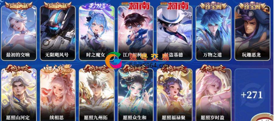 贵族贵9 荣耀典藏1 无双1 珍品传说1 星元皮肤1 传说皮肤27 史...¥1500.00