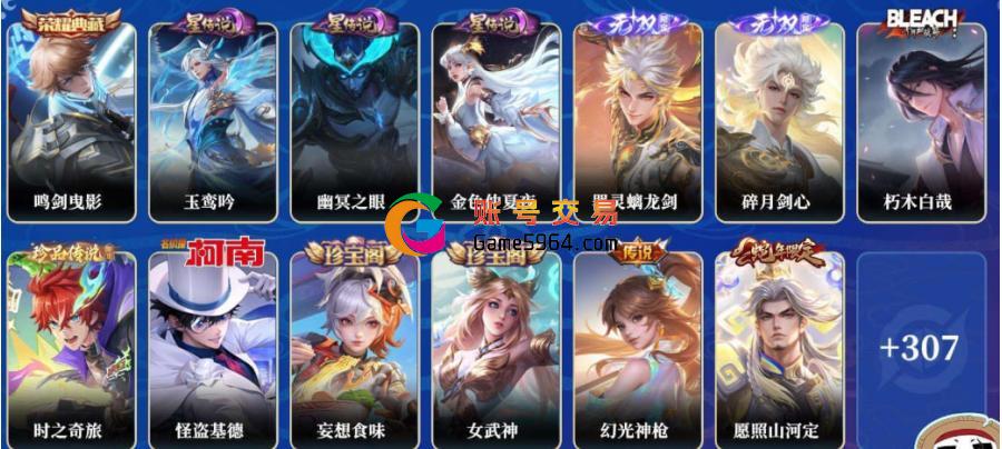 贵族贵9 荣耀典藏1 无双1 珍品传说1 星元皮肤1 传说皮肤27 史...¥1500.00
