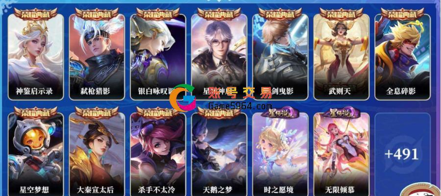 贵族贵10 荣耀典藏11 无双4 星元皮肤9 传说皮肤64 史诗皮肤1...¥4000.00