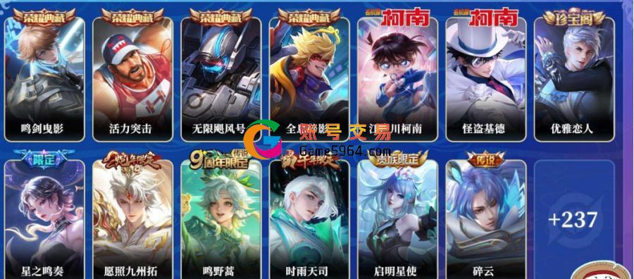 贵族9 荣耀典藏4 珍品传说2 传说皮肤24 史诗皮肤67 皮肤数量2...¥1800.00