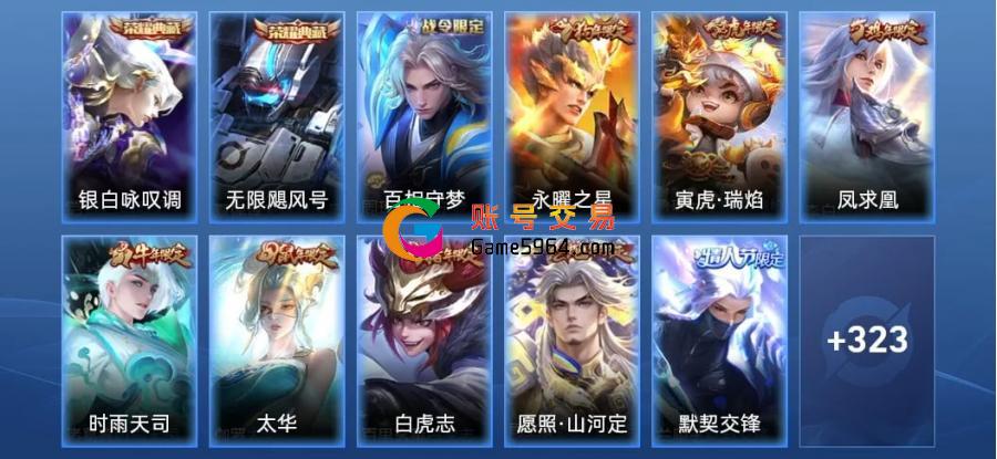 周瑜-百相守梦,猪八戒-年年有余,空空儿-戏梦巡演,孙策-百相守梦,赵云-白执事,姬小满-小满鸭,钟馗-虚灵犬护,赵云-忍·炎影,刘备-浪漫序章,司空震-愿照·山河定,李白-敏锐之力,阿轲-化蝶舞,百里守约-绝影神枪,戈娅-玫蓝誓约,女娲-尼罗河女神,明世隐-景韶洛都,韩信-街头霸王,周瑜-海军大将,大乔-猫狗日记,嬴政-暗夜贵公子,西施-雪境奇遇,太乙真人-谧流熔炉,米莱狄-精准探案法,孙悟空-西部大镖客,明世隐-占星师,钟无艳-春野之旅,沈梦溪-龙舞盛年,百里守约-特工魅影,鬼谷子-天穹祈灯,廉颇-功夫炙烤,张良-一千零一夜,司空震-地狱燃心,蔡文姬-舞动绿茵,上官婉儿-修竹墨客,艾琳-女武神,阿古朵-江河有灵,露娜-紫霞仙子,狄仁杰-锦衣卫,东皇太一-东海龙王,钟无艳-聚星闪耀,亚连-破局者,张良-古海寻踪,艾琳-流音漫舞,戈娅-驭风魔法,孙尚香-沉稳之力,刘禅-电玩·爆裂旋风,李元芳-妄想特派,西施-玲珑珍味,鲁班大师-探海日志,妲己-魅力维加斯,典韦-黄金武士,桑启-画中游,太乙真人-劲辣红锅,裴擒虎-擒涛扼浪,铠-银白咏叹调,暃-星界游侠,白起-白色死神,刘禅-绅士熊喵,吕布-末日机甲,猪八戒-潮玩探月行,司空震-启蛰,桑启-海盐诗旅,嫦娥-暖冬·兔眠,狄仁杰-神器·狴犴令,阿轲-迷踪丽影,元歌-无心,钟无艳-超时空战士,鬼谷子-阿摩司公爵,鬼谷子-五谷丰年,李元芳-云中旅人,戈娅-危途狂花,甄姬-落雪兰心,狂铁-电玩高手,后羿-阿尔法小队,安琪拉-玩偶对对碰,蒙恬-蔚蓝守将,蒙犽-胡桃狂想曲,王昭君-午后时光,沈梦溪-大漠名商,老夫子-潮流仙人,苏烈-爱与和平,赵云-未来纪元,干将莫邪-第七人偶,米莱狄-契约魔法,高渐离-玩趣恶龙,兰陵王-金庭之子,艾琳-奇遇舞章,嫦娥-露花倒影,夏洛特-永昼,兰陵王-暗隐猎兽者,鲁班七号-寅虎·瑞焰,黄忠-火炮绅士,周瑜-真爱至上,嬴政-摇滚巨星,姜子牙-时尚教父,刘邦-虎啸剑宗,廉颇-寅虎·御盾,程咬金-爱与正义,程咬金-无双福将,雅典娜-黎明之约,暃-碧珀绯影,达摩-沙漠行僧,芈月-幻夜卜梦,甄姬-女儿国国王,镜-匿光追影者,马可波罗-潮玩牛仔,宫本武藏-鬼剑武藏,嫦娥-拒霜思,孙尚香-异界灵契,花木兰-水晶猎龙者,雅典娜-冰冠公主,金蝉-前尘,狂铁-特工战影,牛魔-制霸全明星,刘备-万事如意,庄周-高山流水,干将莫邪-真爱魔法,貂蝉-仲夏夜之梦,马超-神威,司马懿-暗渊魔法,猪八戒-猪悟能,甄姬-花好人间,曹操-幽灵船长,安琪拉-时之奇旅,孙悟空-孙行者,司马懿-魇语军师,百里玄策-原初追逐者,苏烈-千军破阵,后羿-圣弓游侠,典韦-铁甲之心,黄忠-芝加哥教父,廉颇-地狱岩魂,老夫子-航海奇遇记,公孙离-蜜橘之夏,达摩-大发明家,曜-李逍遥,鲁班大师-乓乓大师,太乙真人-华丽摇滚,大乔-白鹤梁神女,钟馗-驱傩正仪,虞姬-启明星使,云缨-赤焰之缨,墨子-神迹守卫,吕布-圣诞狂欢,李白-凤求凰,米莱狄-胡桃异想国,盘古-重装意志,嬴政-优雅恋人,张良-缤纷绘卷,孙膑-天使之翼,韩信-白龙吟,项羽-苍穹之光,西施-诗语江南,李信-一念神魔,程咬金-演武夺筹,达摩-星际陆战队,大乔-守护之力,露娜-瓷语鉴心,安琪拉-心灵骇客,妲己-女仆咖啡,刘备-时之恋人,花木兰-默契交锋,夏侯惇-无限飓风号,鲁班大师-归虚梦演,元歌-云间偶戏,项羽-霸王别姬,兰陵王-默契交锋,刘禅-秘密基地,曜-归虚梦演,杨戬-次元傲视,甄姬-冰雪圆舞曲,诸葛亮-时雨天司,孙尚香-水果甜心,张飞-乱世虎臣,吕布-御风骁将,牛魔-奔雷神使,亚瑟-潮玩骑士王,狄仁杰-万华元夜,孙悟空-零号·赤焰,孙膑-天狼运算者,百里玄策-白虎志,墨子-龙骑士,澜-孤猎,云中君-纤云弄巧,蒙犽-狂想玩偶喵,鲁班七号-电玩小子,裴擒虎-街头旋风,裴擒虎-李小龙,哪吒-三太子,马可波罗-暗影游猎,苍-维京掠夺者,姜子牙-炽热元素使,雅典娜-单词大作战,鬼谷子-原初探秘者,廉颇-无尽征程,雅典娜-战争女神,阿古朵-熊喵少女,老夫子-醍醐杖,梦奇-胖达荣荣,猪八戒-西部大镖客,瑶-森,蒙恬-秩序猎龙将,黄忠-烈魂,墨子-金属风暴,盾山-圆桌骑士,娜可露露-晚萤,橘右京-修罗,狄仁杰-超时空战士,花木兰-兔女郎,明世隐-疑决卦,镜-冰刃幻境,不知火舞-魅语,云中君-荷鲁斯之眼,李信-灼热之刃,李白-范海辛,盘古-创世神祝,阿轲-暗夜猫娘,钟无艳-王者之锤,刘备-纽约教父,李元芳-银河之约,百里玄策-威尼斯狂欢,后羿-如梦令,典韦-岱宗,程咬金-功夫厨神,阿轲-节奏热浪,伽罗-太华,诸葛亮-黄金分割率,王昭君-偶像歌手,鲁班七号-木偶奇遇记,哪吒-次元突破,沈梦溪-星空之诺,弈星-混沌棋,曹操-天狼征服者,亚瑟-心灵战警,蔡文姬-繁星吟游,兰陵王-驯魔猎人,露娜-哥特玫瑰,王昭君-幻想奇妙夜,白起-星夜王子,马可波罗-激情绿茵,夏侯惇-朔风刀,上官婉儿-梁祝,周瑜-赤莲之焰,干将莫邪-久胜战神,王昭君-精灵公主,鲁班七号-狮舞东方,沈梦溪-鲨炮海盗猫,孙膑-归虚梦演,小乔-缤纷独角兽,张飞-五福同心,刘禅-天才门将,盾山-御銮,裴擒虎-天狼狩猎者,狄仁杰-鹰眼统帅,钟馗-神迹守卫,曹操-死神来了,李元芳-逐浪之夏,典韦-蓝屏警告,宫本武藏-万象初新,小乔-丁香结,苏烈-坚韧之力,貂蝉-圣诞恋歌,牛魔-御旌,女娲-朔望之晖,庄周-奇妙博物学,嬴政-白昼王子,曹操-超能战警,苏烈-玄武志,百里守约-朱雀志,孙悟空-大圣娶亲,孙策-猫狗日记,干将莫邪-冰霜恋舞曲,狄仁杰-魔术师,赵云-引擎之心,公孙