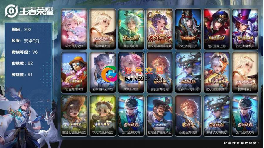 V6 3传说 24史诗 92皮肤 90英雄 至尊星耀II...¥150.00