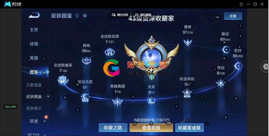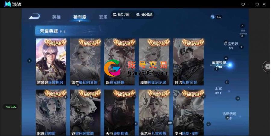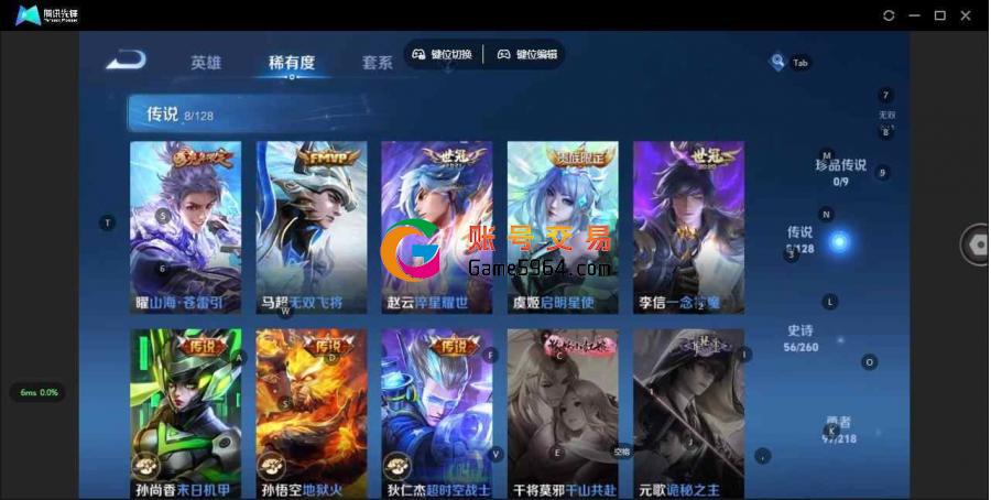 V6 3典藏 1无双 21传说 59史诗 195皮肤 无双王者...¥435.00