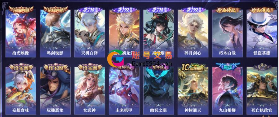 【省标4】 贵族8 荣耀典藏2 无双4 珍品传说2 星传说2 传说皮肤...¥2000.00