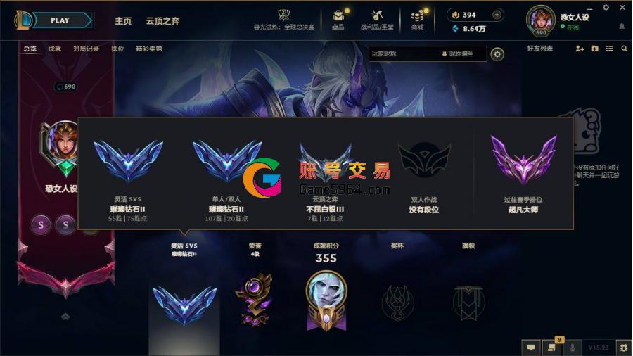 2终极 28神话 23臻彩 101限定 78传说 709皮肤 344炫彩 171英雄 钻石